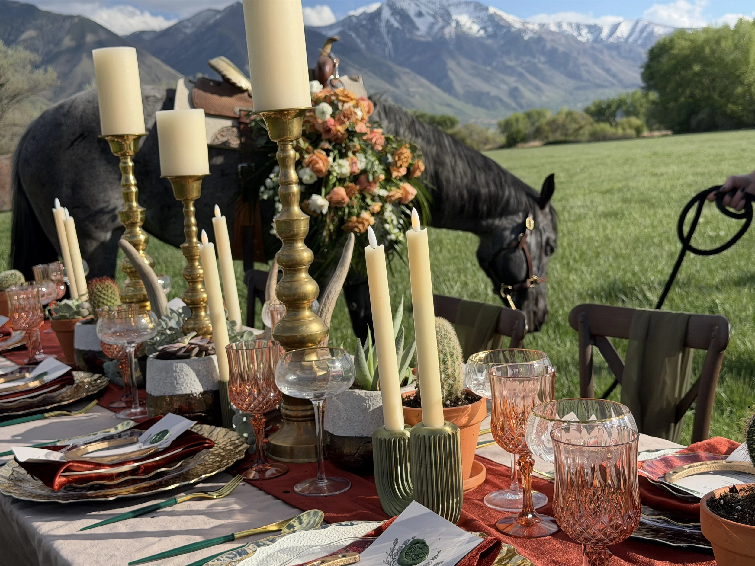 There were moments of stepping back and just taking it all in—the mountains in the distance, the table set perfectly in the foreground, and a horse grazing quietly nearby. Those are the moments that stick.
